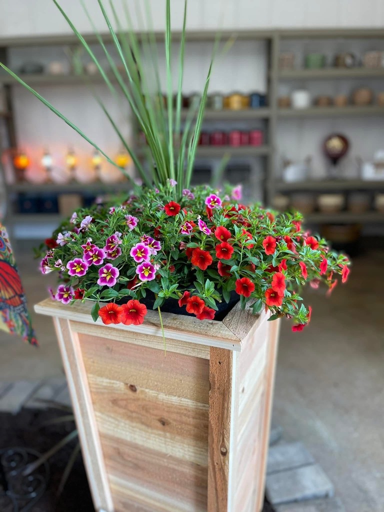 Pictured right: locally hand-made cedar planters available in a variety of sizes. Custom orders accepted.